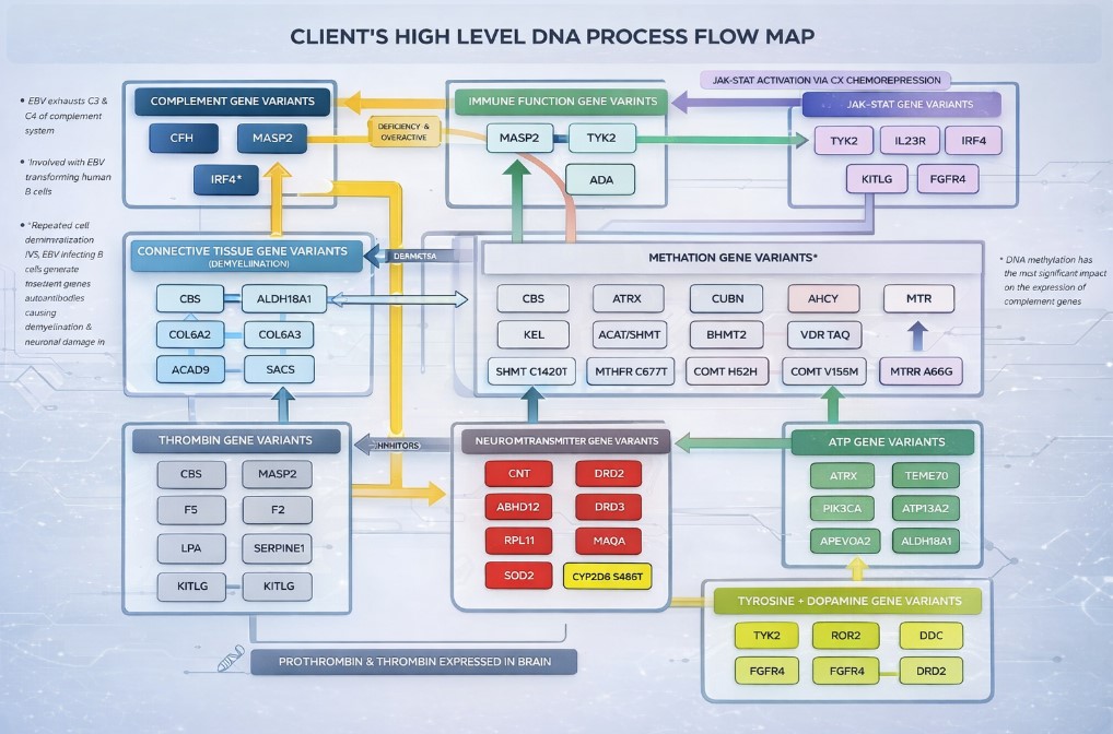 Utilizing our proprietary framework, we are able to generate a high level picture of ongoing genetic interactions occurring within YOU.
